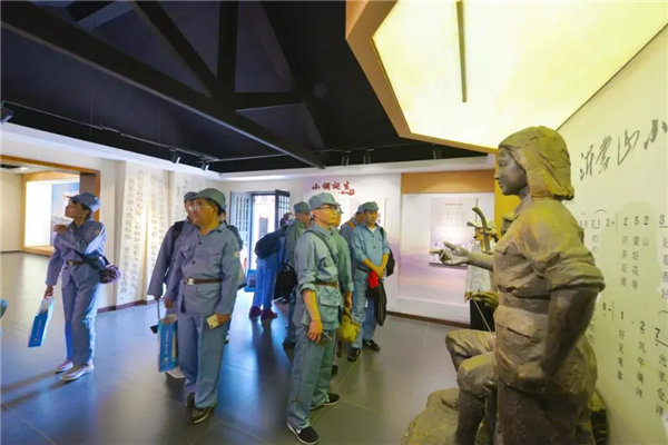 首发团先来到大青山胜利突围纪念馆,重温入党誓词,重走大青山突围路,感受革命艰辛历程。之后赴沂蒙山银座天蒙旅游区,着八路军服装,吃忆苦思甜饭,参观沂蒙山小调活态博物馆,学唱《沂蒙山小调》歌曲,体验八路军满缸运动、匍匐前进、独木桥、小推车等。银座旅行社精心安排专业导游在每个景点为大家详细讲述相关历史和革命故事,带领大家重温老一辈革命先烈的光荣事迹。