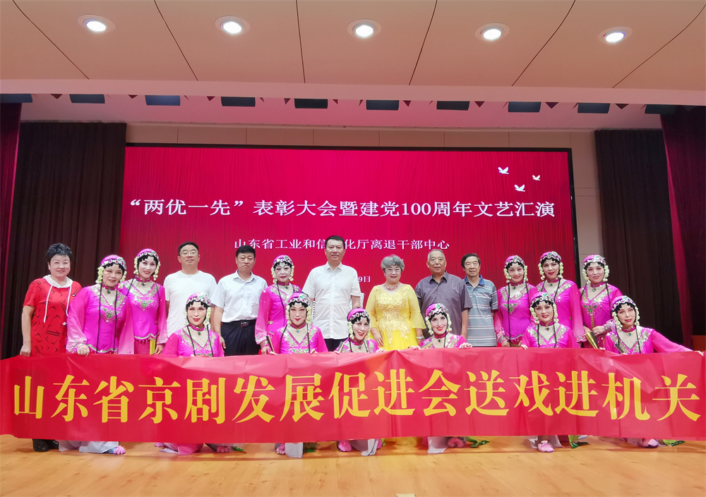 6月29日,山东省京剧发展促进会走进山东省工业和信息化厅离退干部中心,共同举办建党100周年文艺汇演暨送戏进机关活动。山东文旅投资集团有限公司(简称“山东文旅投资集团”)党委书记、董事长兼山东省京剧发展促进会副理事长王化龙参加活动。