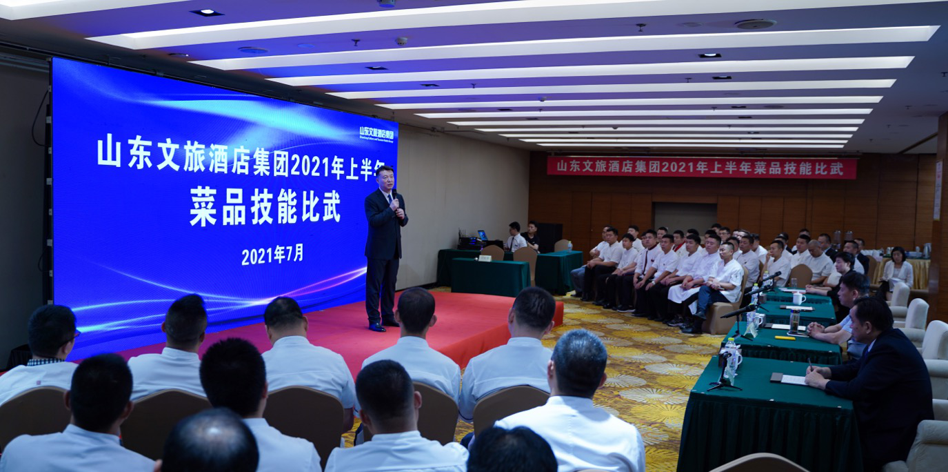 7月13日,山东文旅酒店集团2021年上半年菜品技能比武鸣锣开赛。来自公司所属星级酒店的参赛大厨奉上44道精品美食,口味好,颜值高,具有丰富的文化内涵。经过激烈角逐和资深餐饮专家点评打分,济南银座颐庭大酒店、索菲特银座大饭店、银座泉城大酒店获得比赛一等奖。