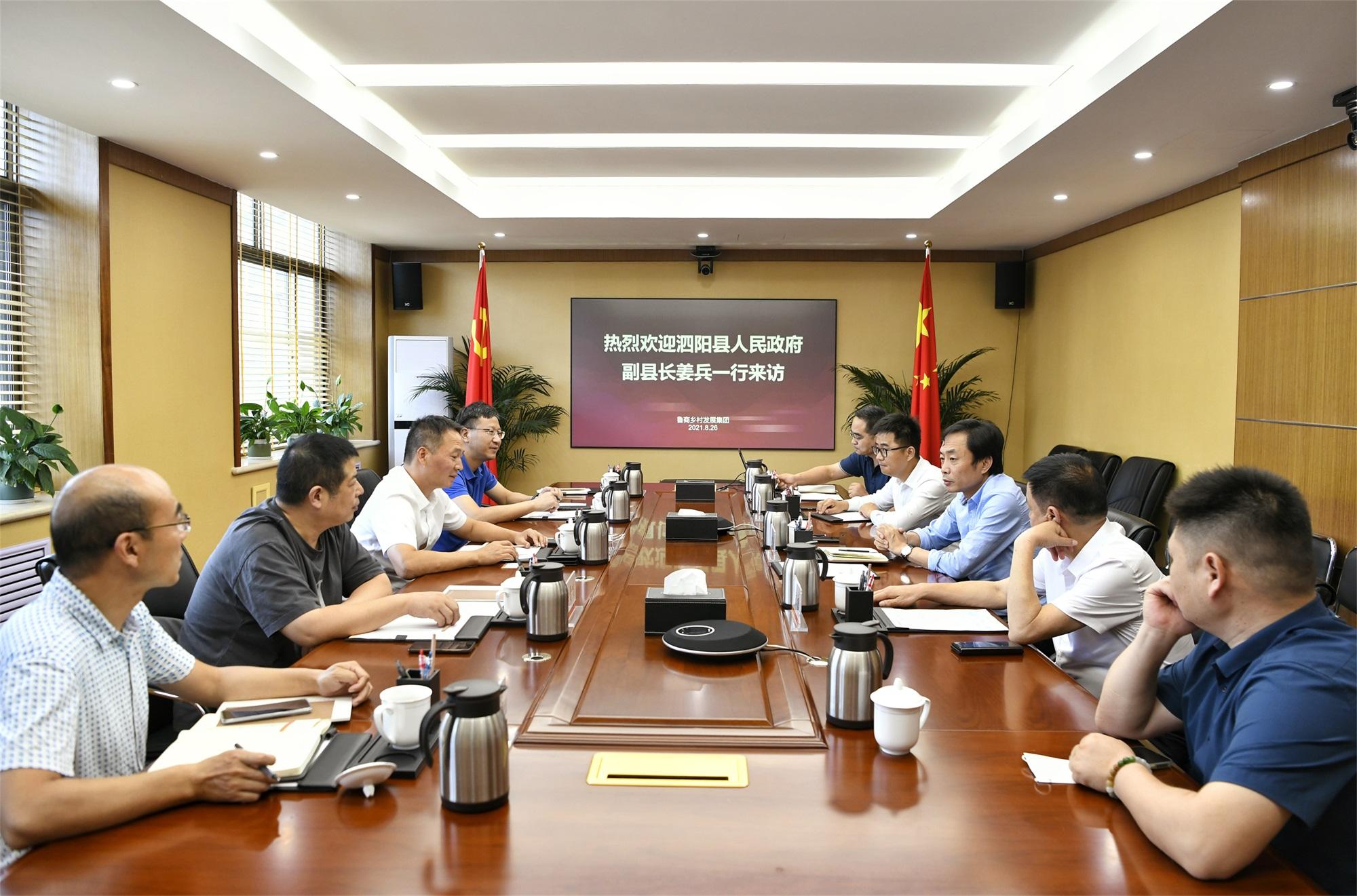 8月26日,江苏省宿迁市泗阳县副县长姜兵一行到鲁商乡村发展集团有限公司(以下简称“乡发展集团”)考察交流。乡发展集团党委书记、董事长张建峰,济宁贯通农产品市场开发有限公司董事长侯家塘陪同参加考察活动。