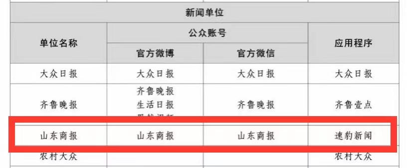 10月20日,国家网信办公布了最新版互联网新闻信息稿源单位名单,山东文旅传媒集团旗下三家省级媒体山东商报、鲁网、速豹新闻网的十个平台均被纳入。
