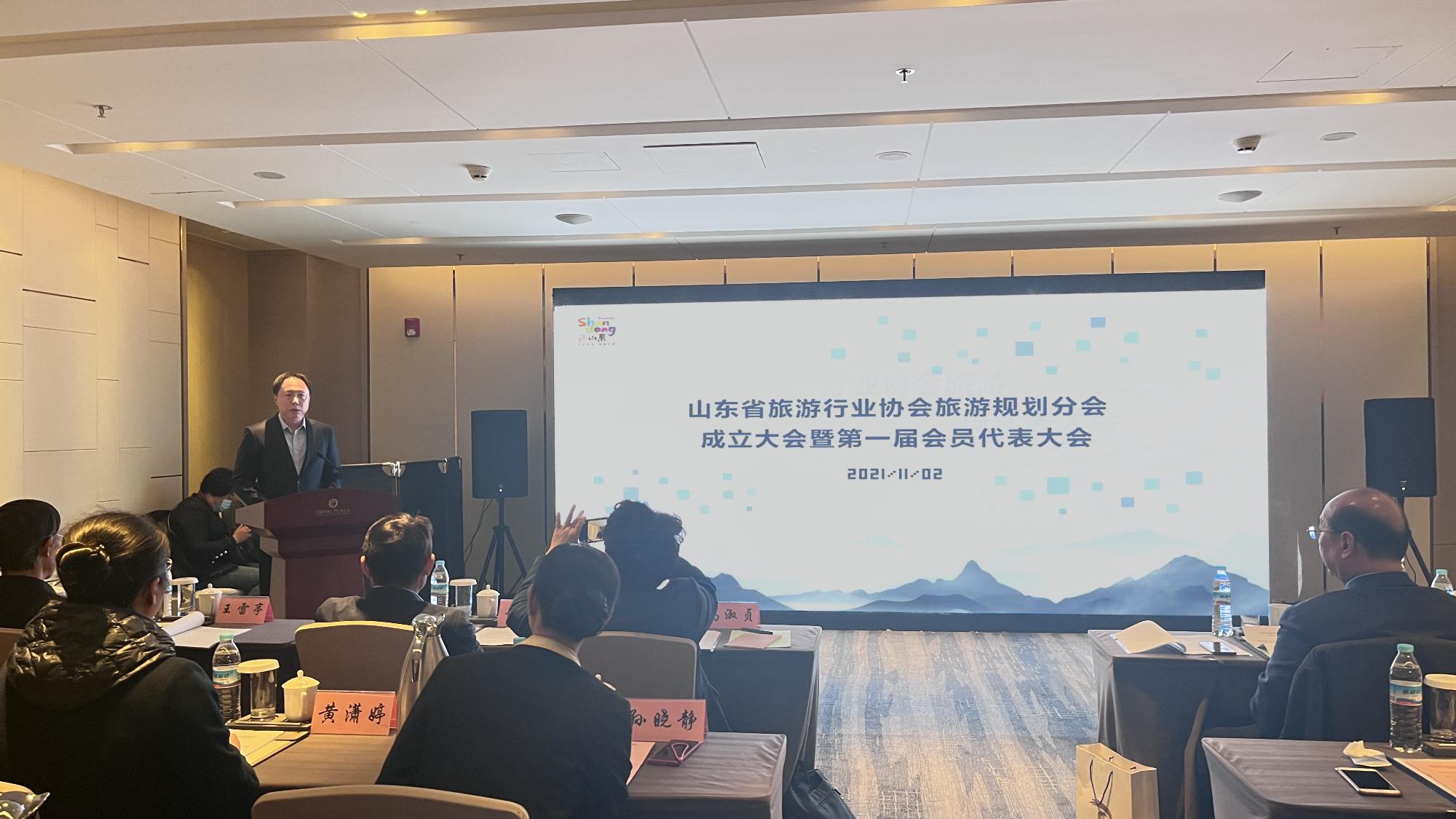 11月2日,由省旅游设计院发起的山东省旅游行业协会旅游规划分会成立大会在济南举行。山东旅游职业学院党委书记陈国忠,中国旅游协会副会长、山东省旅游行业协会会长王德刚,山东省国欣文化旅游发展集团有限公司(简称“国欣文旅”)党委副书记、总经理丁艺,国欣文旅党委委员、副总经理、山东文旅景区集团党委书记、董事长季将,山东省文化和旅游厅资源开发处处长赵勇,以及省文化和旅游厅、旅游行业协会相关领导、旅游学术专家、省内48家旅游规划机构负责人、文旅项目代表、新闻媒体等共计90余人参加此次大会,第十一届山东省委委员、省妇联副主席、三涧溪村党委书记高淑贞作为特邀嘉宾出席。