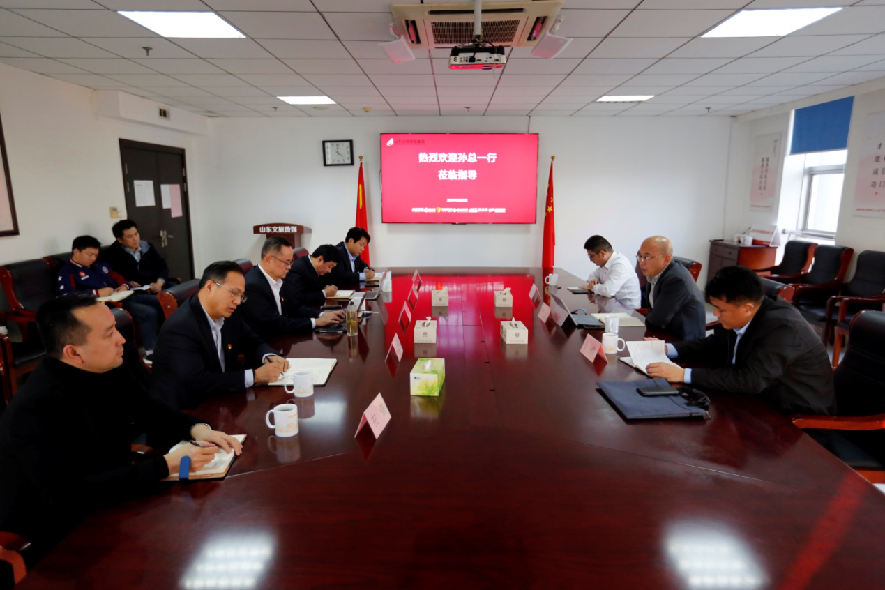 根据山东省国欣文化旅游发展集团有限公司(简称“国欣文旅”)工作安排,12月13日,国欣文旅党委委员、副总经理孙超到山东文旅传媒集团调研。山东文旅传媒集团党委书记、董事长、山东省文旅产业创新研究院院长庞道锋作工作汇报。