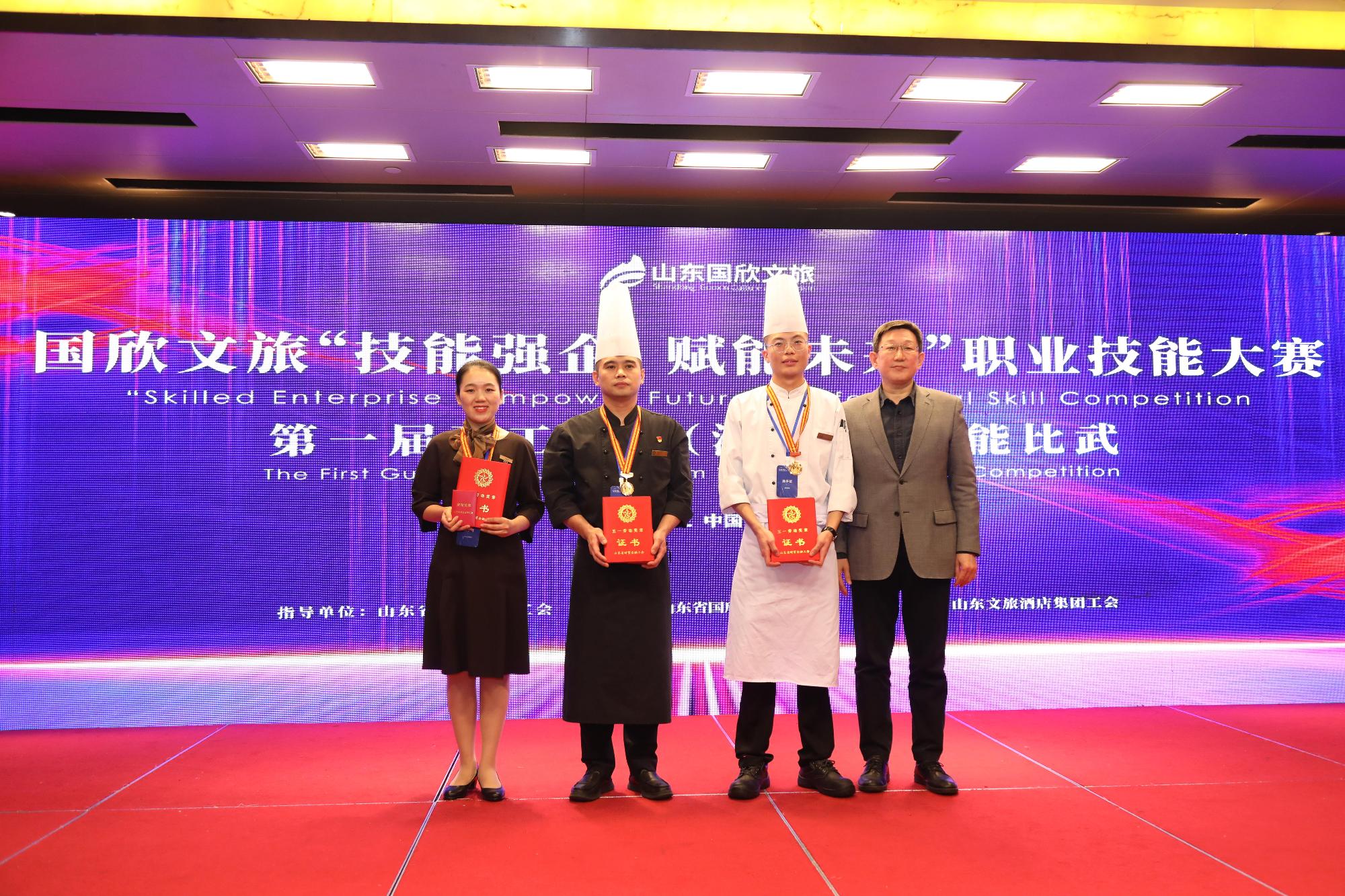 在国欣文旅“技能强企 赋能未来”职业技能大赛暨第一届青工服务(酒店类)技能比武中,李先平、高乐、刘明鑫展示了精湛的技能。由泉城大酒店行政总厨李先平主创的“诗礼传家”文化主题宴,将传统鲁菜制作技巧与齐鲁特色文化相互融合,道道菜品精雕细琢,清汤清澈透明,抻面细如银丝,彰显了鲁菜文化深厚底蕴。高乐作为济南索菲特银座大饭店客房主管设计获奖的小王子主题客房以小王子的各种奇特旅程为灵感,从策划组织到方案落地,完美融合了法式浪漫和儒家文化的智慧与精髓。在创新菜品烹饪环节,济南银座颐庭大酒店初级厨师刘明鑫创作的“糖醋菊花鱼”,从造型、口味、质地、色泽、创意等方面独具特色,赢得了评委一致认可。