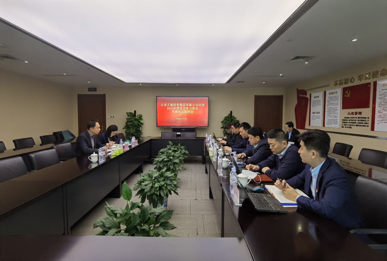 1月27日,山东文旅投资集团有限公司(简称“山东文旅投资集团”)党委召开2021年度党史学习教育专题民主生活会。山东文旅集团党委副书记、总经理丁艺到会指导,山东文旅投资集团党委书记、董事长王化龙主持会议。