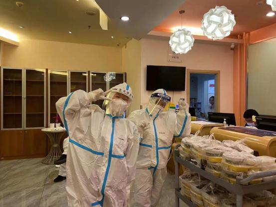 截至3月20日,公司65家酒店积极配合政府要求,全面投入隔离防控服务。期间,酒店成立疫情防控应急管理小组,制定防控应急预案,分为内外两圈开展工作,工作员工每日进行一次核酸检测。党员们穿着防护服每日穿梭在各个房间中,为酒店隔离人员进行住房清洁。面对疫情,他们说得最多的是“作为国企员工要责无旁贷扛起任务,组织需要我们,再累也要坚持”。