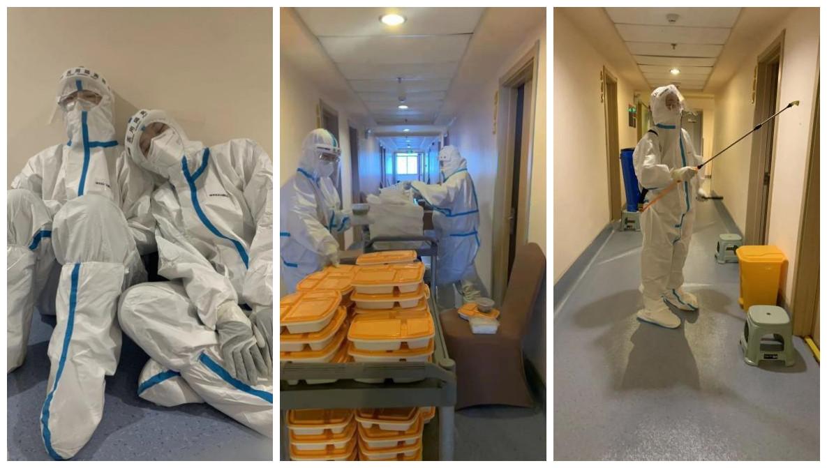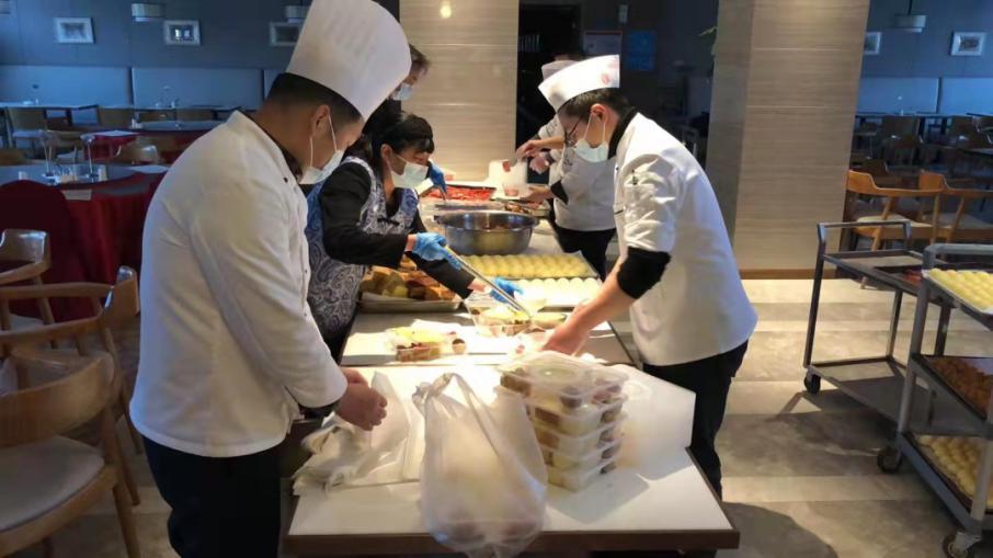 餐饮主管王凯田放弃休假主动请缨在酒店值班,为疫情防控贡献力量;客房服务人员穿上防护服每日穿梭在各个房间中,为酒店隔离人员进行住房清洁……