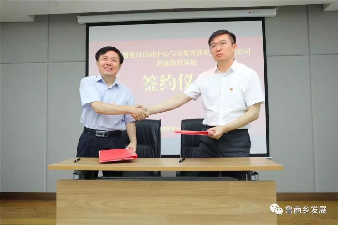 6月27日上午,山东省商业集团有限公司(简称“鲁商集团”)联合泰安主题党日活动中心、泰安市岱岳区道朗镇“春天里峪”党建联盟党总支共同开展了“主题党日携手‘百企联百村’助力乡村振兴”活动。活动中,鲁商乡村发展集团有限公司党支部委员李存福代表鲁商集团与泰安主题党日活动中心主任彭永森共同签订了《泰安主题党日活动中心与山东省商业集团有限公司共建教育基地合作协议书》,双方将依托各自优势,加强共建共联、创新党建形式,发挥党建在乡村振兴建设中的引领作用。银座集团党员代表、岱岳区道朗镇“春天里峪”党建联盟党总支书记李波等40余党员参加此次活动。