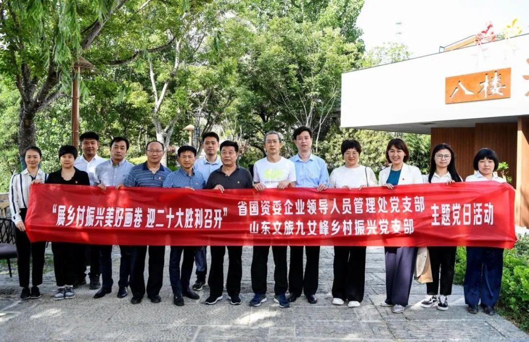 展乡村振兴美好画卷,迎二十大胜利召开。5月27日,省国资委企业领导人员管理处党支部、九女峰乡村振兴党支部在山乡集团泰山·九女峰乡村振兴示范区开展联建共建主题党日活动。省国资委党委委员、副主任、一级巡视员邵泽武,山东文旅党委副书记、总经理丁艺,党委委员、纪委书记王振江,首席战略官、山乡集团党委书记、董事长张建峰参加活动。