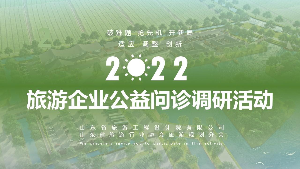 为响应省文旅厅号召,助力文旅企业适应新时期产业发展规律,关注把握新冠肺炎疫情后文化旅游市场环境新变化和新需求,在山东省文化和旅游厅、省旅游行业协会指导下,山东省旅游工程设计院、省旅游行业协会规划分会联合发起“2022旅游企业公益问诊调研”系列活动。