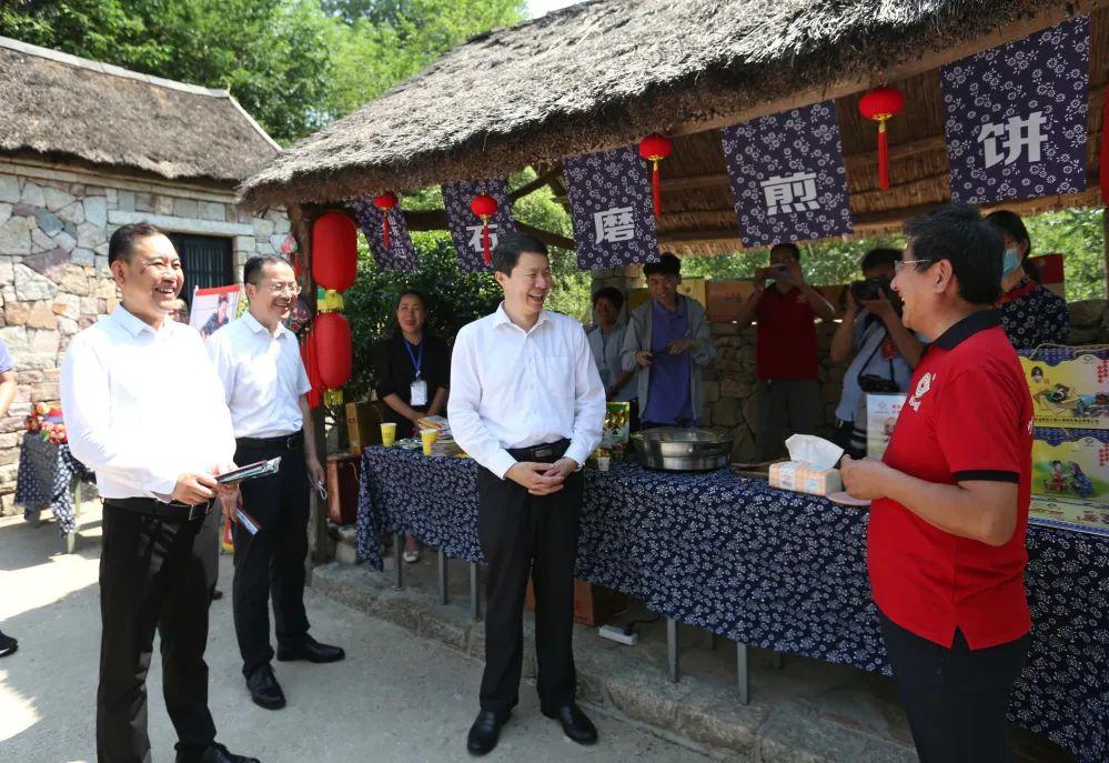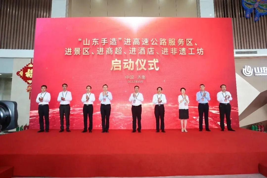 6月18日,省委常委、宣传部部长白玉刚,副省长孙继业出席“山东手造”进高速公路服务区、进景区、进商超、进酒店、进非遗工坊启动仪式。