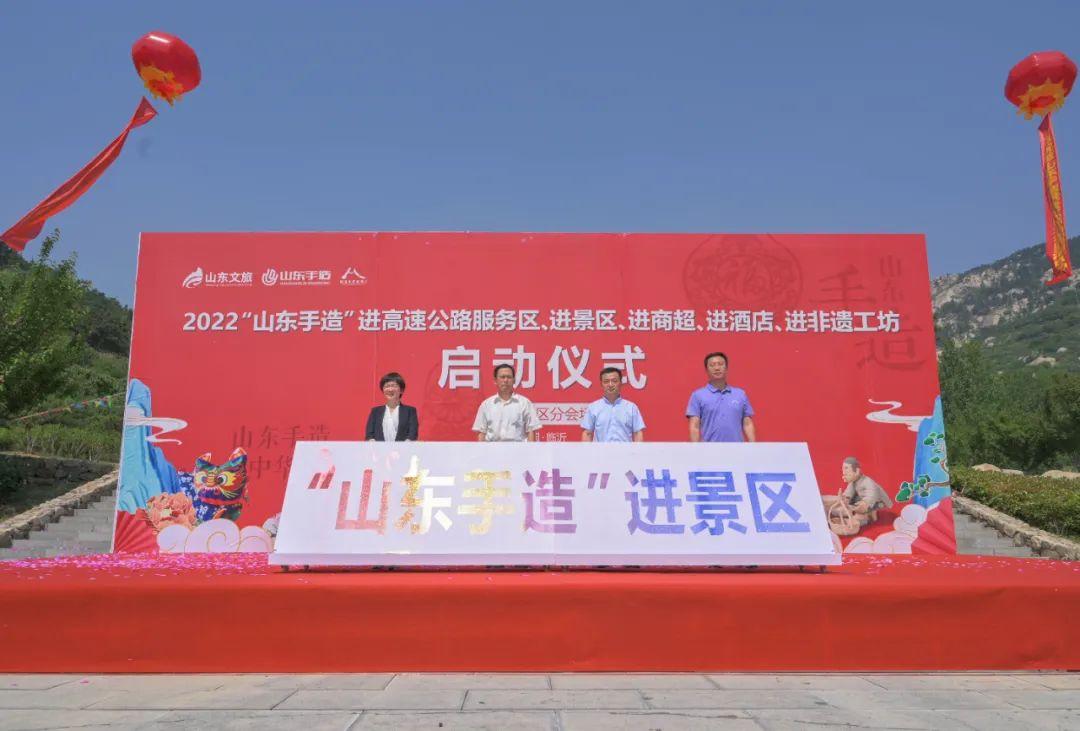 同日,2022“山东手造”进高速公路服务区、进景区、进商超、进酒店、进非遗工坊分会场启动仪式在山东文旅沂蒙山天蒙旅游区(简称“天蒙山景区”)隆重举行。
