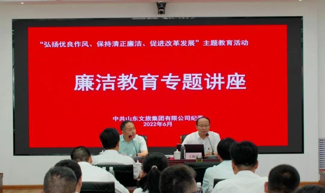 今年以来,山东文旅集团深入贯彻落实关于加强新时代廉洁文化建设要求,把加强廉洁文化建设作为一体推进不敢腐、不能腐、不想腐的基础性工程,提出打造“清廉文旅·山清水净”廉洁文化品牌,以“六个一”为载体扎实推进廉洁文化建设,通过开展一次廉洁教育讲座、举办一次书画摄影展、进行一次红色观摩、举行一次演讲比赛、组织一次党规党纪抢答赛、开展一次警示教育,大力营造清廉建设氛围,努力建设政治生态清朗清明、经营管理清廉高效、干部职工清正有为的“三清”文旅,为集团加快打造全国一流文旅集团和高质量发展营造风清气正的政治生态和干事创业的良好环境。