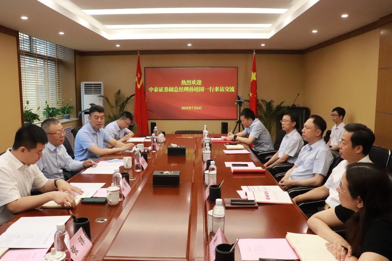 7月6日,中泰证券副总经理孙培国一行到访山东文旅集团,就产融合作事宜同山东文旅集团党委副书记、总经理丁艺座谈交流。