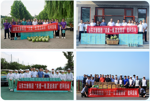 近日,山东文旅集团开展“关爱一线 夏送清凉”慰问活动,将夏日凉爽送入基层一线员工身边。8月3日至5日,山东文旅集团党委委员、副总经理、工会主席孙超带队深入景区、项目、产业等基层一线走访慰问,了解员工需求,将防暑物资送到项目一线,同时送去集团党委的关心和问候,让员工实实在在感受到组织的温暖。一线员工纷纷表示今后要更加勤奋工作,认真负责,敢于担当,为集团发展贡献文旅人力量,以优异成绩迎接党的二十大胜利召开。