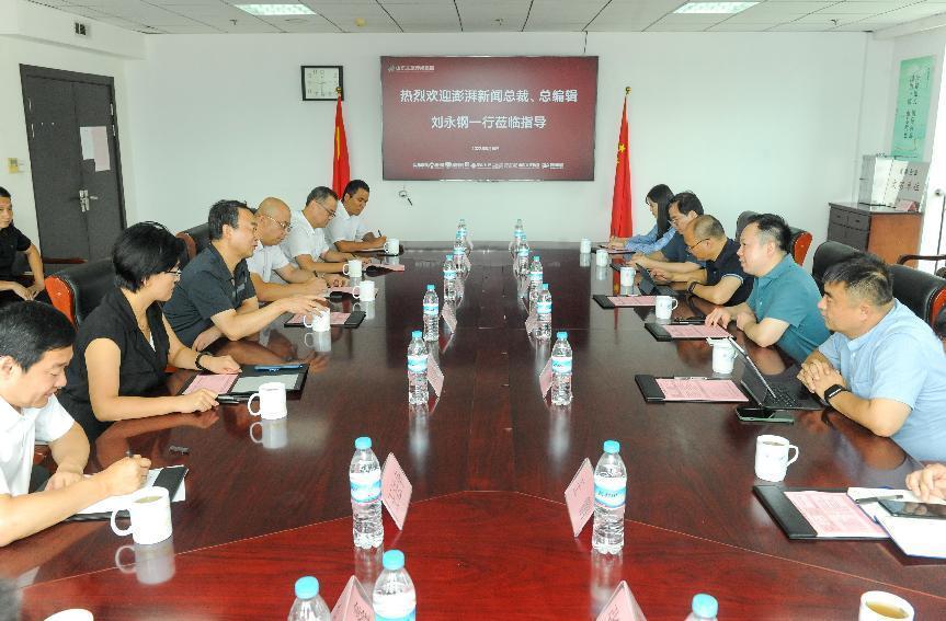 刘永钢一行在山东文旅传媒集团考察了融媒传播、智库建设、会展会务等领域,重点考察了以速豹新闻、山海视频为代表的山东商报融媒体矩阵,对山东商报·速豹新闻的原创影响力、山海视频的正能量传播表示赞赏。