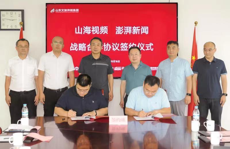会上,澎湃新闻山东运营中心与山东文旅传媒集团旗下山海视频签订了战略合作框架协议。双方就共同建设中国(山东)正能量短视频库,推出山东正能量短视频计划,讲述山东正能量故事,立体打造山东各城市形象等方面进行全方位、深层次战略合作。
