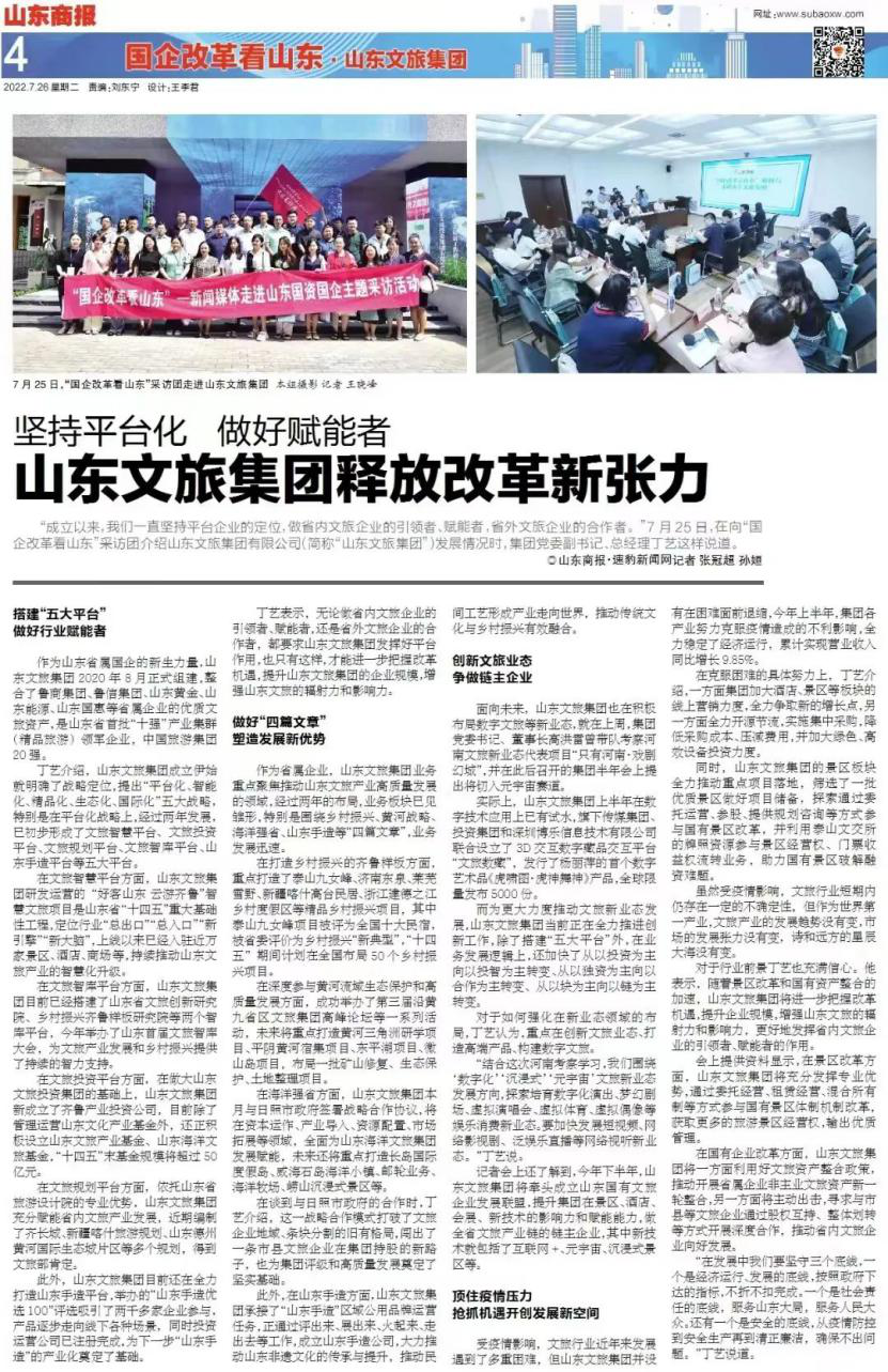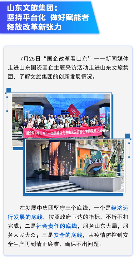 省国资委主办的“国企改革看山东”——主题采访活动第二期已圆满收官,来自中央和省级新闻单位的媒体记者走进山东文旅集团,深度探访了山东文旅在国企改革三年行动中的成果、亮点。