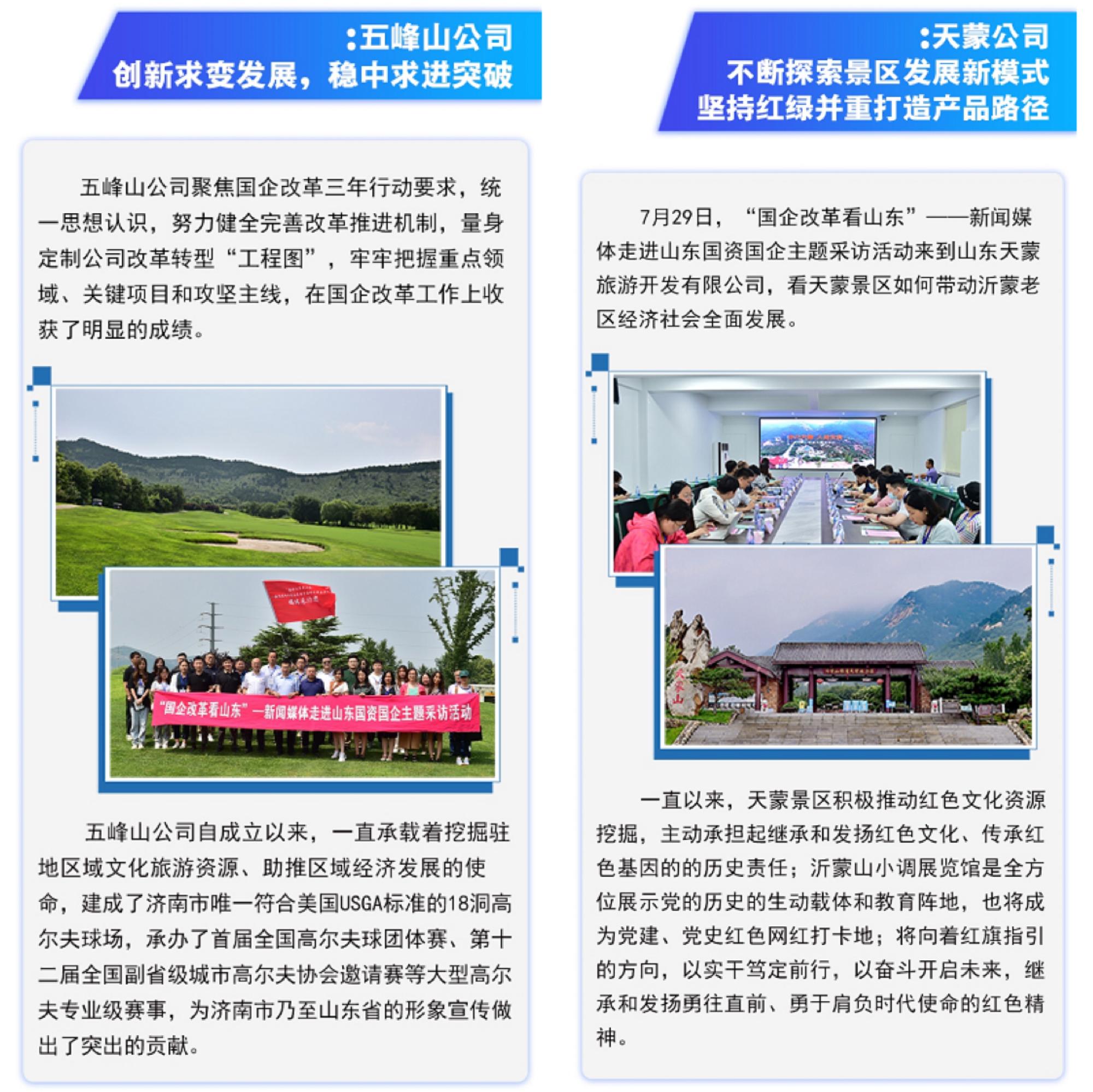 从集团总部到各产业板块、各项目,人民日报、新华社等20余家媒体深入到六大采访点,记录山东文旅人争当时代先行者的铿锵步伐,重点挖掘在推动企业重组整合、深化三项制度改革、心无旁骛攻主业、强化科技创新能力等方面的生动实践,全方位、多角度展示山东文旅集团推进国企改革最新成果和典型经验,营造国企改革良好舆论氛围。