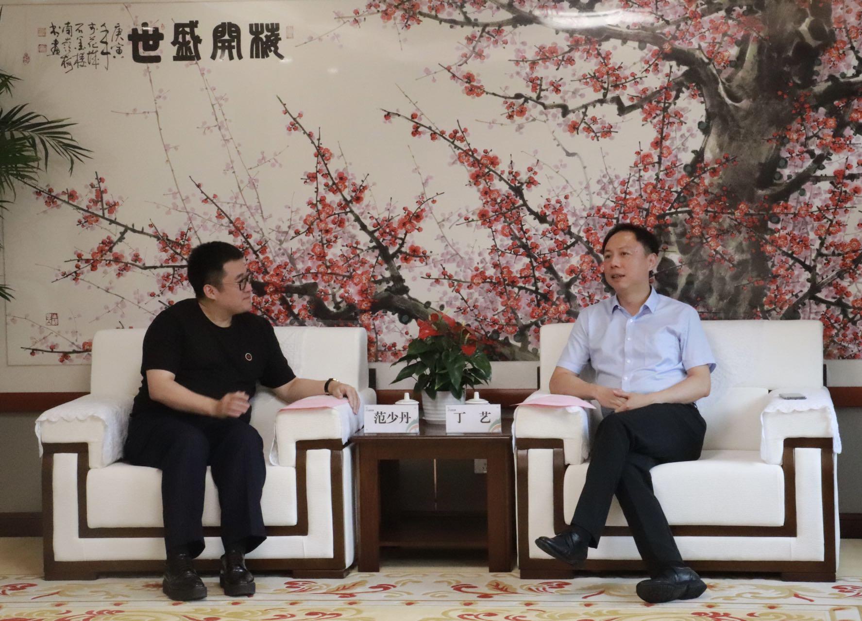 8月24日,银亚商业集团有限公司(简称“银亚商业集团”)董事长范少丹一行到山东文旅集团座谈交流,集团党委副书记、总经理丁艺会见。