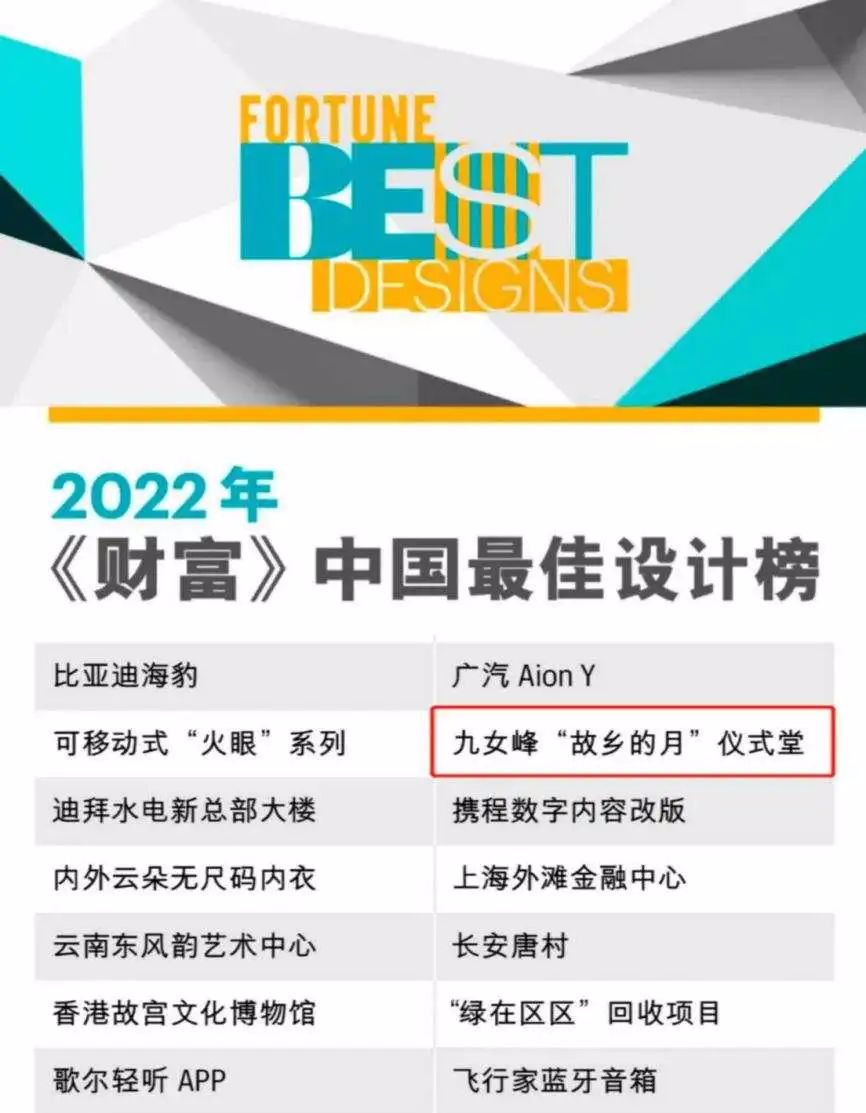 近日,“2022年《财富》中国最佳设计榜”揭晓,泰山·九女峰乡村振兴示范区“故乡的月”成功入选。此次评选由《财富》杂志主办,旨在表彰从人的真实需求出发、尝试解决复杂问题、具有商业前景或社会影响力的设计创意,共50个设计创意入选。
