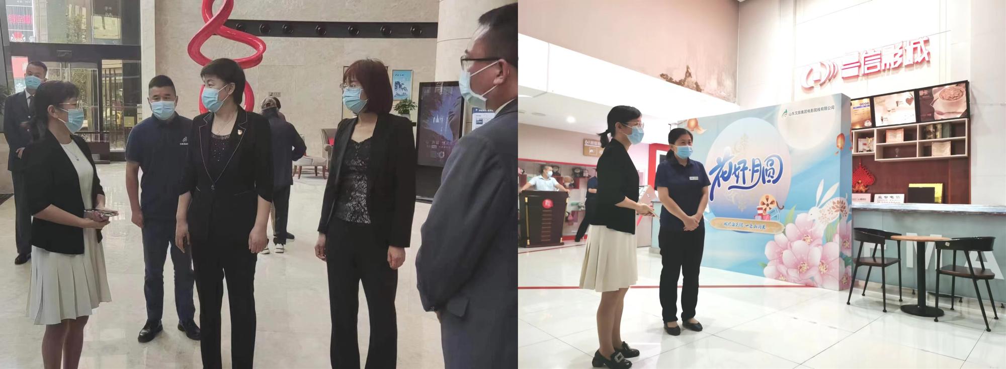 山东文旅投资集团检查组分别到文旅影城泰安店、济南体育中心店、济南和谐广场店、济南泺源大街店,现场检查影院防疫措施落实、消防设施配备使用、安全通道畅通等情况,对影院员工健康监测、放映场所消防管控、观众进出管理、安全设施设备管理等进行专项检查,要求影院负责人切实履行安全生产主体责任,严格落实扫码测温、查验健康码行程码、查验核酸检测报告、佩戴口罩等要求,切实做好内部环境、设备设施消杀,加大排片间隔,控制影厅上座率,确保顾客观影安心、放心、舒心。