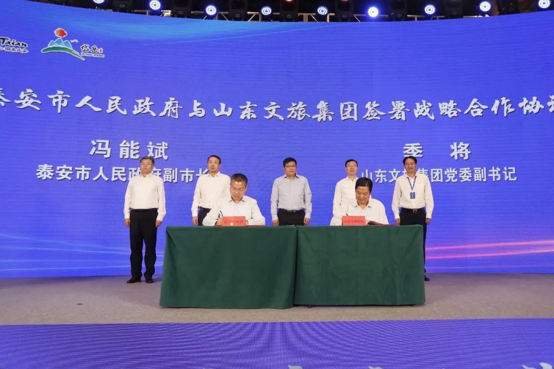 签约仪式上,泰安市政府与山东文旅集团、泰山学院签约,泰安市政府副市长冯能斌分别与山东文旅集团党委副书记季将、王雷亭签署战略合作框架协议。