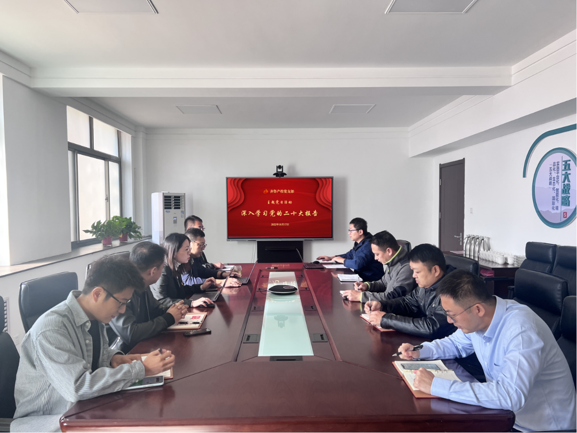 ▲齐鲁产投开展主题党日活动深入学习党的二十大报告。