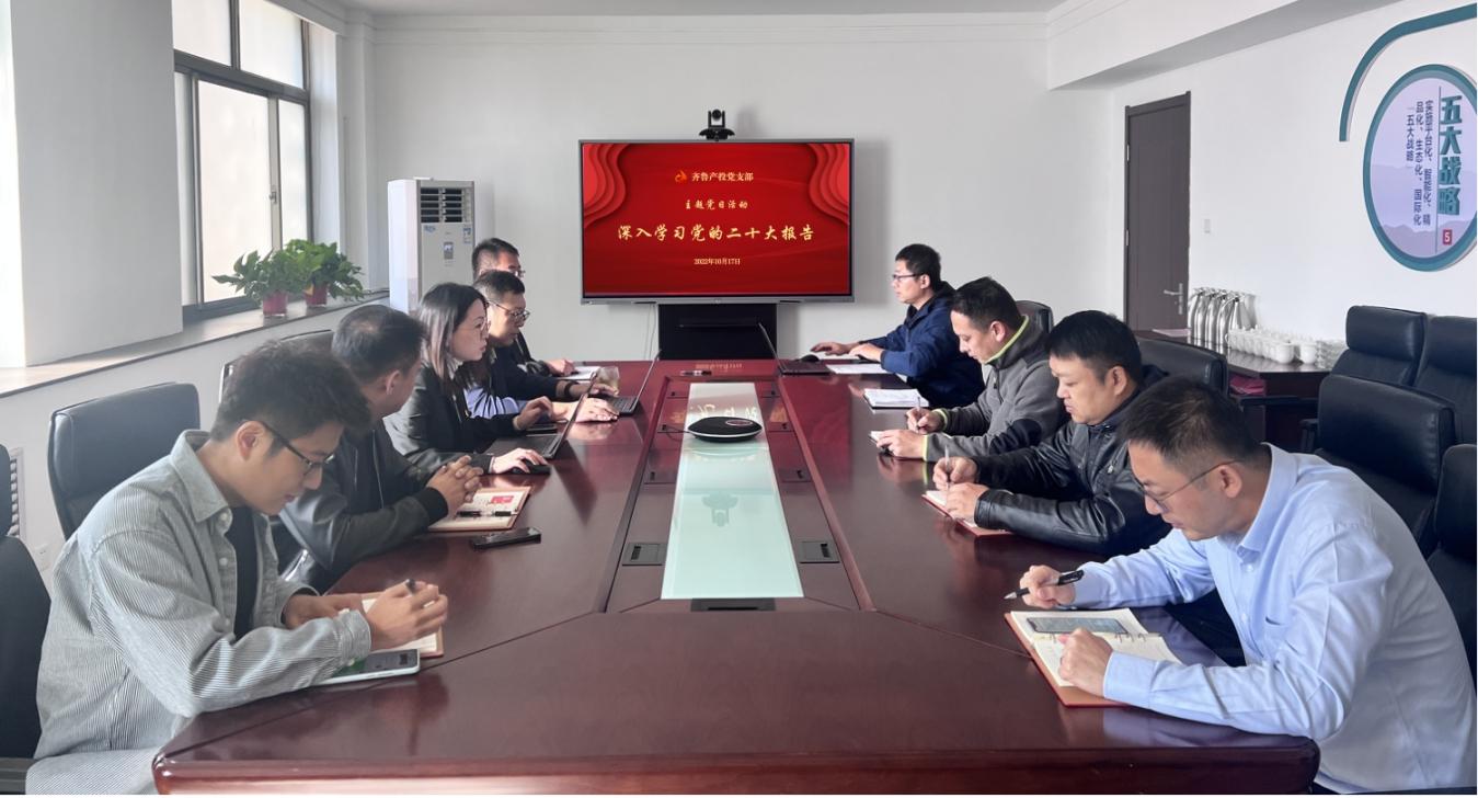为深入学习贯彻落实党的二十大报告精神,全面准确地把握报告丰富内涵、精髓要义、精神实质,10月17日,齐鲁产投党支部组织开展“深入学习党的二十大报告”主题党日活动,党支部书记、副总经理杨贵霞主持会议。