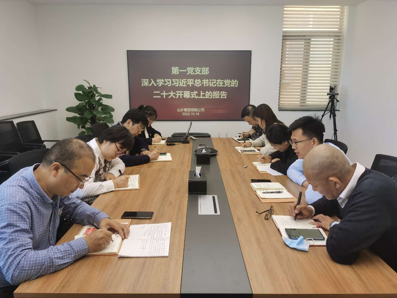 10月18日,山乡集团有限公司第一党支部组织召开支部党员大会,党支部全体党员、入党积极分子通过读原文、学要点等形式,专题学习党的二十大报告,并立足公司和项目经营发展实际,结合学习、工作情况进行交流发言。