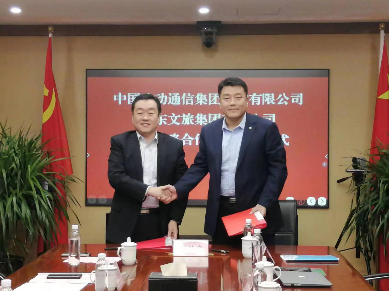 山东文旅集团政策研究部(双招双引办公室)、中国移动山东公司政企客户中心负责人分别代表双方签约。