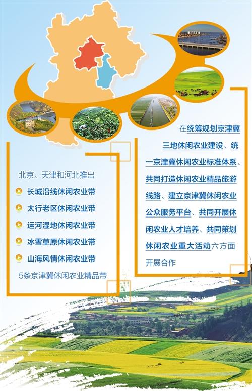 5条休闲农业精品带,既是对京津冀现有精品项目的汇集,也是对未来精品项目培育的一个导向。京津冀三地农业主管部门将在统筹规划京津冀三地休闲农业建设、统一京津冀休闲农业标准体系、共同打造休闲农业精品旅游线路、建立京津冀休闲农业公众服务平台、共同开展休闲农业人才培养、共同策划休闲农业重大活动六方面开展合作。