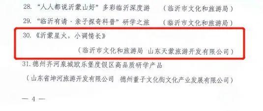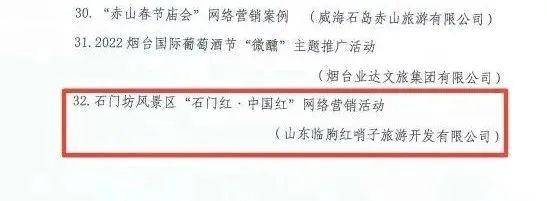 天蒙景区《沂蒙星火,小调情长》、红叶柿岩旅游区“长城脚下红叶浓”第三届万亩红叶季入选2022年山东省优质旅游产品名单;石门坊景区“石门红·中国红”网络营销活动入选2022年山东省文旅网络营销优秀案例产品名单。