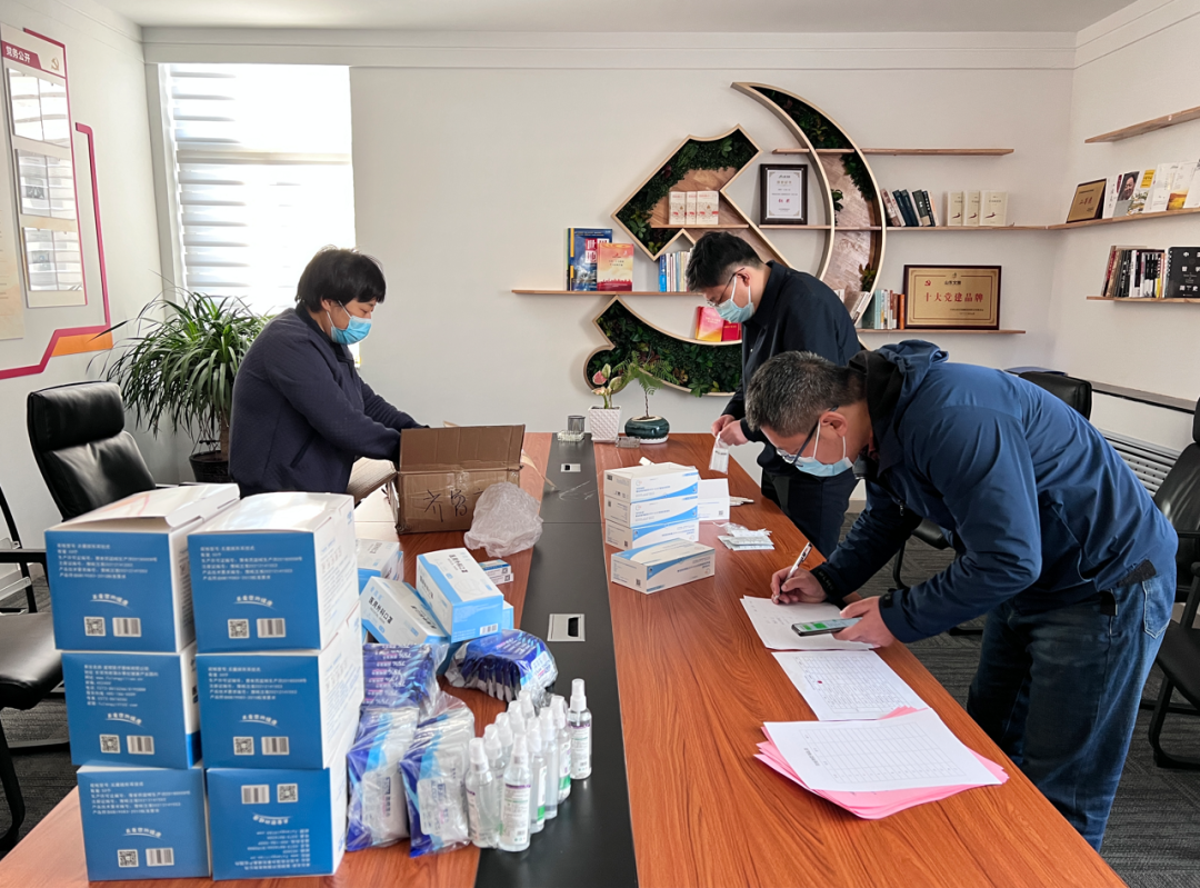 齐鲁产投党支部坚持党建引领,始终将全体员工的生命安全和身体健康放在第一位,时刻密切关注疫情动态。“我们要未雨绸缪,盘点好公司库存,及时做好防疫物资储备工作”,在疫情防控新态势下,公司领导班子高瞻远瞩,提前就防疫物资储备工作进行了部署,要求各相关部门提早行动、扎实开展好疫情防护工作。公司党政工团各相关部门和人员成立工作专班,协同配合,线上线下紧急联系协调货源,第一时间购置一批抗原检测试剂盒、消毒液、口罩、酒精等防疫物资,为员工解燃眉之急,也为公司安全生产保驾护航。