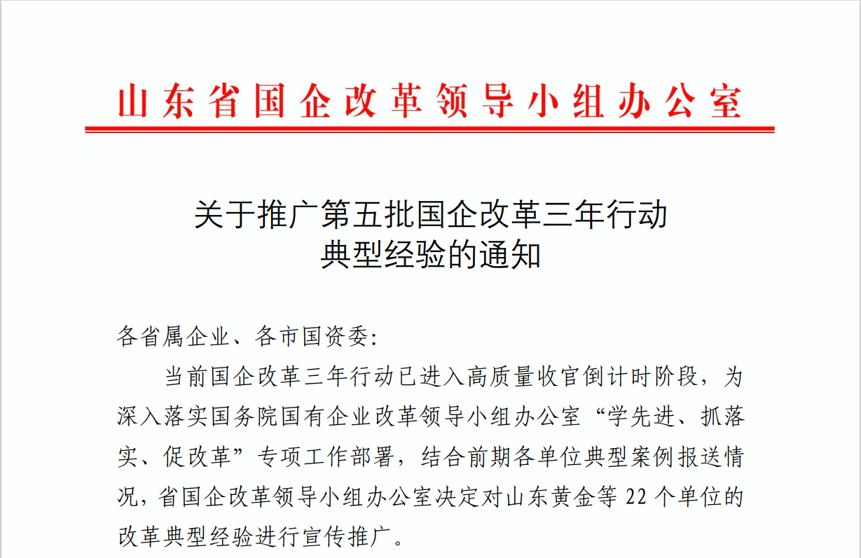 近日,山东省国企改革领导小组办公室下发《关于推广第五批国企改革三年行动典型经验的通知》,公布省属企业改革典型案例推广名单,山东文旅集团报送的《深化三项制度改革 积聚文旅高质量发展新优势》经验案例榜上有名,为集团“国企改革三年行动”收官之年写下精彩的一笔。