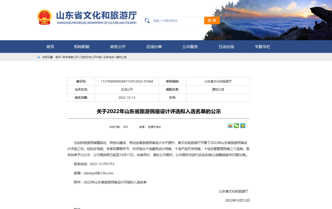近日,山东省文化和旅游厅公布了2022年山东省旅游民宿设计评选入选名单。经初步筛选、专家投票、网站公示等环节,共评选出十佳建筑设计民宿、十佳产品开发民宿、十佳运营管理民宿三个品类。山乡集团泰山九女峰乡村振兴示范区“故乡的云”高端野奢度假酒店成功入选“十佳产品开发民宿”、泰山九女峰·野有院民宿(原八楼氧心谷)成功入选“十佳运营管理民宿”。