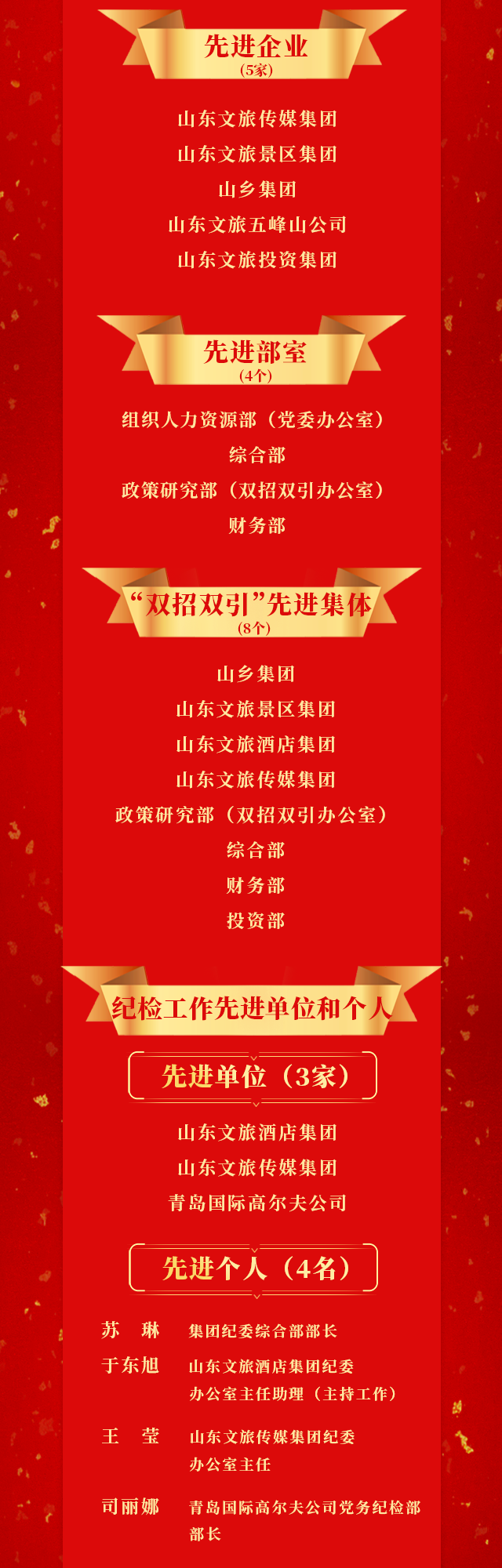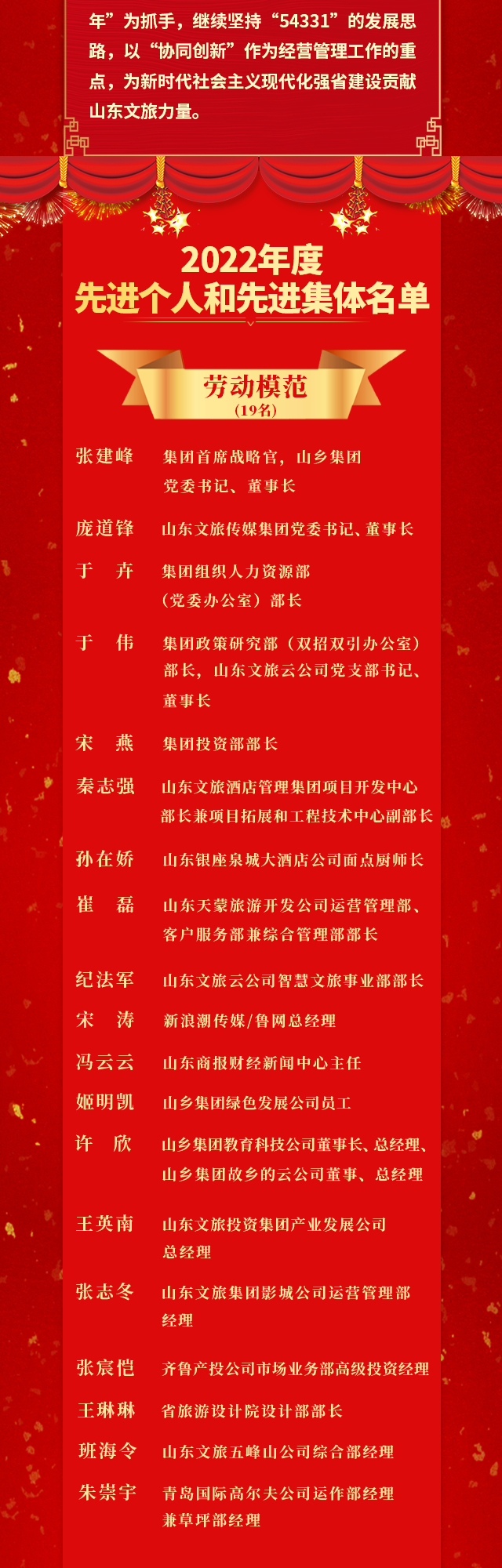 山东文旅集团2022年度先进集体和先进个人荣誉榜揭晓