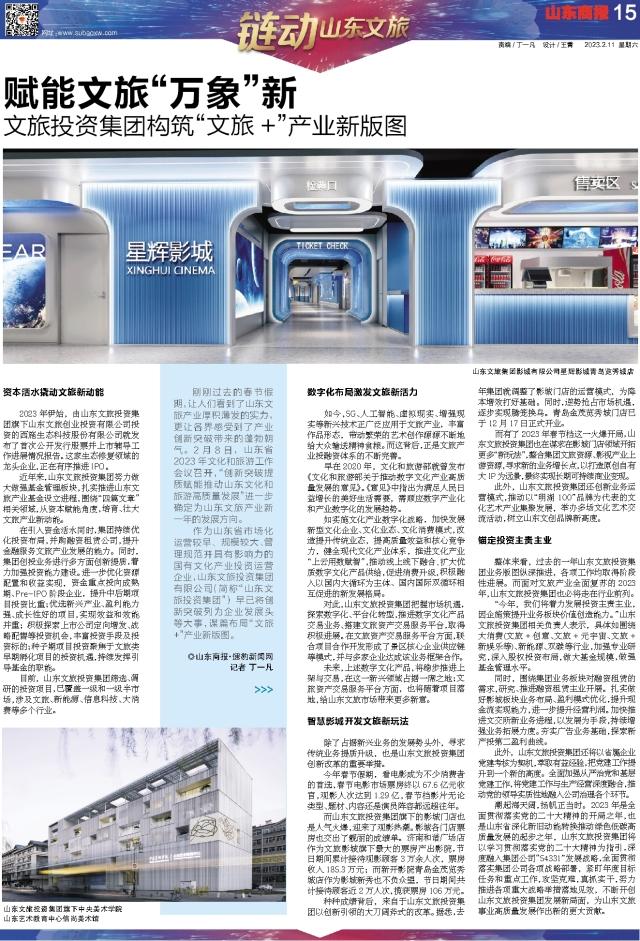 而有了2023年春节档这一火爆开局,山东文旅投资集团也在谋求在影城门店领域开拓更多“新玩法”,整合集团文旅资源、影视产业上游资源,寻求新的业务增长点,以打造原创自有大IP为远景,最终实现长期可持续商业变现。