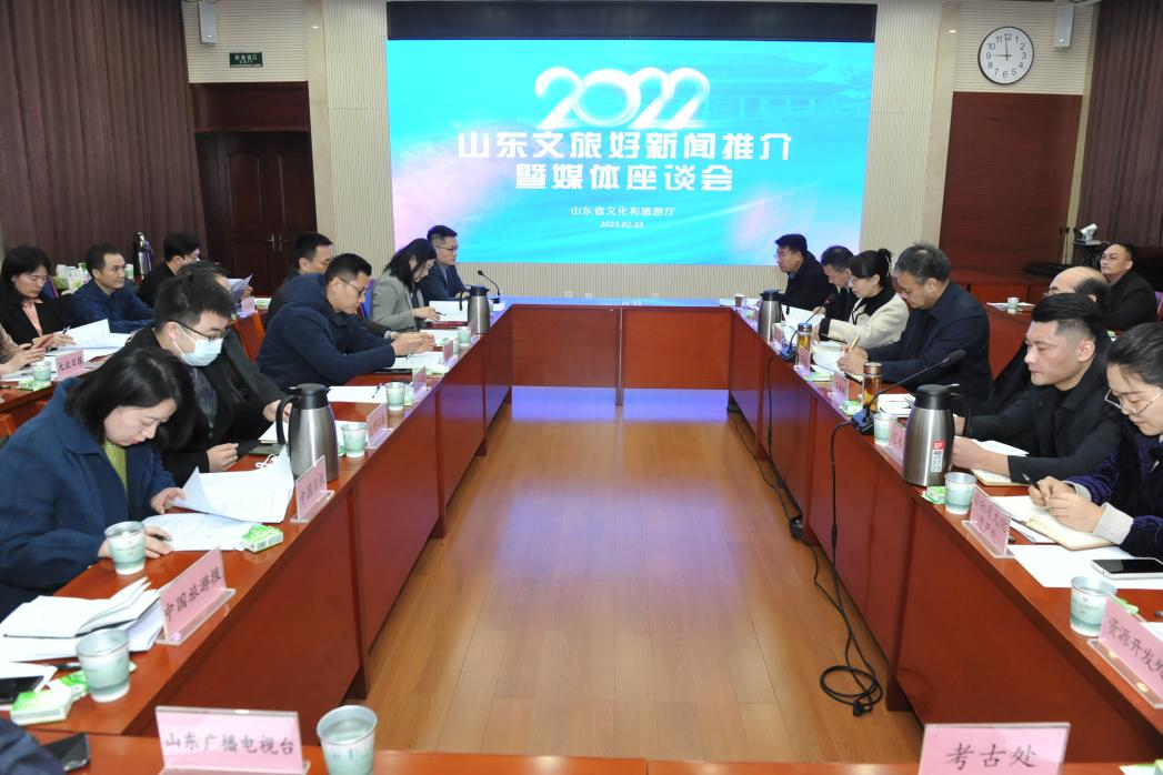 2月23日,2022山东文旅好新闻推介暨媒体座谈会在山东省文化和旅游厅会议室召开。会上发布“2022山东文旅优秀宣传推广作品”推介名单,这是山东省文化和旅游厅首次发布此类推介名单。省文化和旅游厅班子成员、二级巡视员王春生出席会议。16家中央驻鲁及省级媒体代表、文旅行业专家、省文化和旅游厅相关处室负责人参会。
