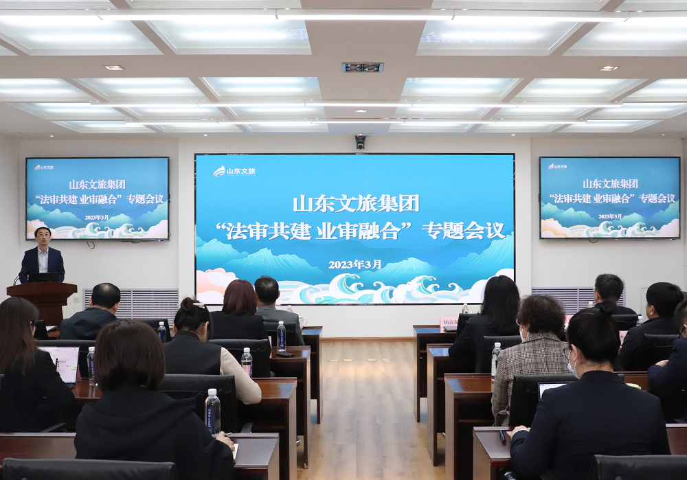 会议首先安排山东文旅酒店集团、山乡集团和山东文旅投资集团分别进行了工作经验交流和典型创新案例分享。集团法务审计部现场汇报了2022年度法务审计工作亮点,并围绕“法审共建 业审融合”创新主题说明了2023年法审工作实施计划。