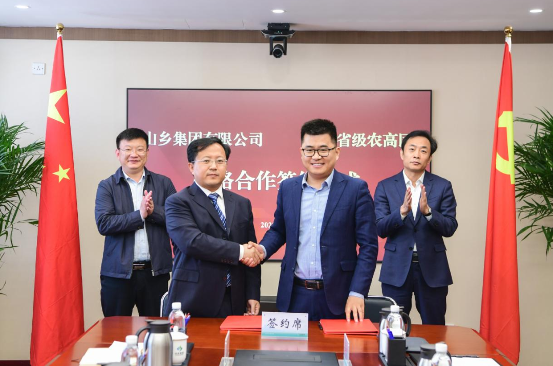 在签约仪式现场,山乡集团总经理助理、冷链产业发展公司董事长兼总经理孔祥勋与垦利省级农高区党工委副书记李隆新代表双方签署战略合作协议。双方将重点围绕乡村振兴齐鲁样板研究院项目、沿海乡村振兴示范片区建设、文旅产业发展和冷链仓储集群打造等领域开展深入合作,实现强强联合、共同发展。