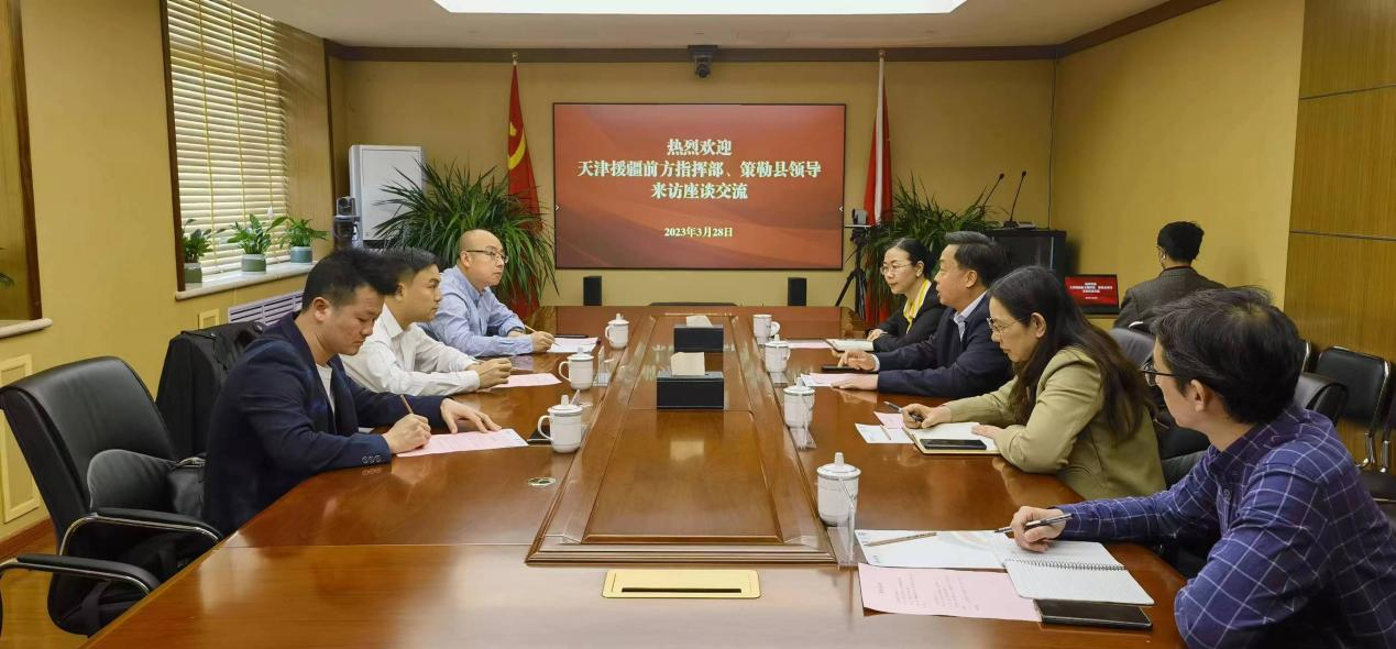 3月28日,和田行署副专员、天津援疆前指副指挥长方伟一行到山东文旅集团座谈交流,集团党委委员、副总经理乔卫东会见。