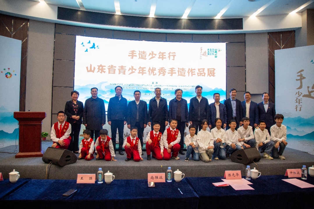 最后,陈光华宣布“手造少年行”——山东省青少年优秀手造作品展开幕,并与少先队员们一起启动“手造少年行”卷轴。开幕式结束后,与会领导在少先队员的带领下共同参观山东省青少年优秀手造作品展。