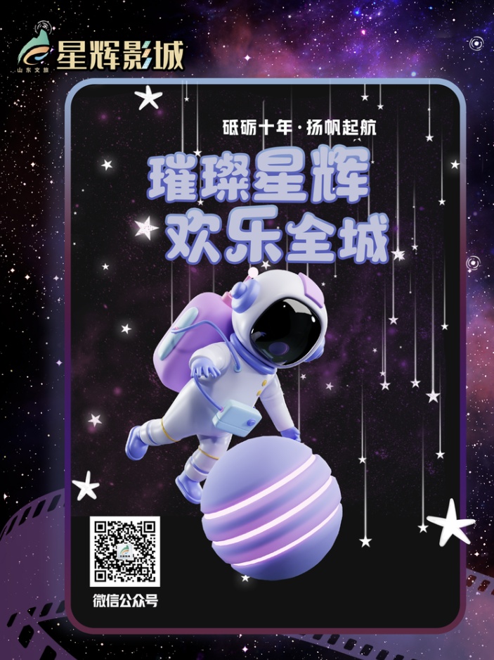 十年是时间的刻度,是发展的坐标,更是奋进的脚步。继山东鲁信影城有限公司更名为山东文旅集团影城有限公司(以下简称“文旅影城”)后,鲁信影城于4月13日正式更名为山东文旅星辉影城。更名后的影城将围绕“璀璨星辉 欢乐全城——砥砺十年 扬帆起航”主题开展系列活动向广大观众表达感谢,并力争开创山东文旅星辉影城的下一个10年新篇章(原发售有效期内的各类电影票券及会员卡正常使用)。