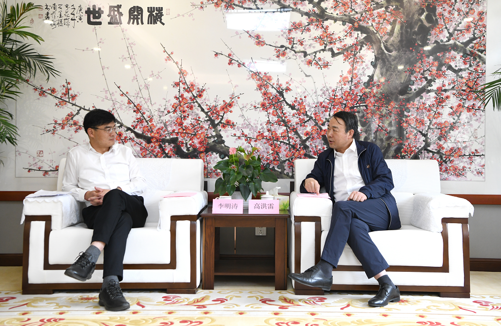 4月13日,山东文旅集团党委书记、董事长高洪雷会见到访的长岛海洋生态文明综合试验区(简称长岛综试区)工委副书记、管委专职副主任李明涛一行。山东文旅集团首席战略官、山乡集团党委书记、董事长张建峰,长岛综试区工委委员、管委副主任、党群工作部部长王林祖参加。
