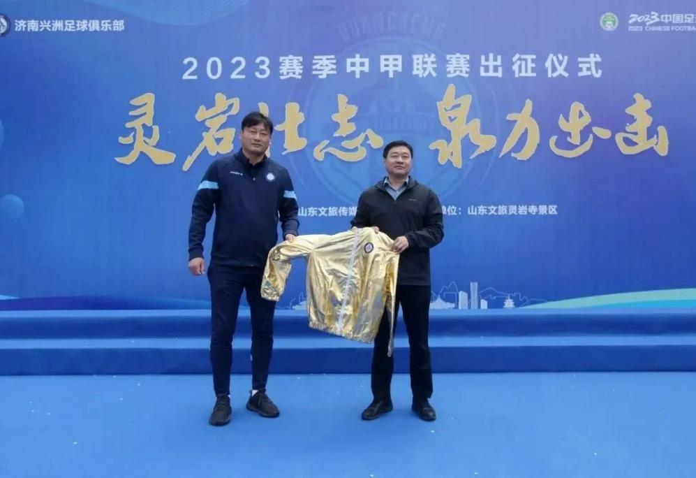 4月18日上午,由山东文旅传媒集团全案执行的济南兴洲足球俱乐部2023赛季中甲联赛出征仪式在山东文旅·灵岩寺景区成功举行。