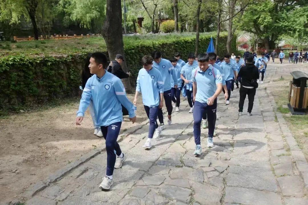 出征仪式后,济南兴洲足球俱乐部在灵岩寺景区内进行了登山活动。
