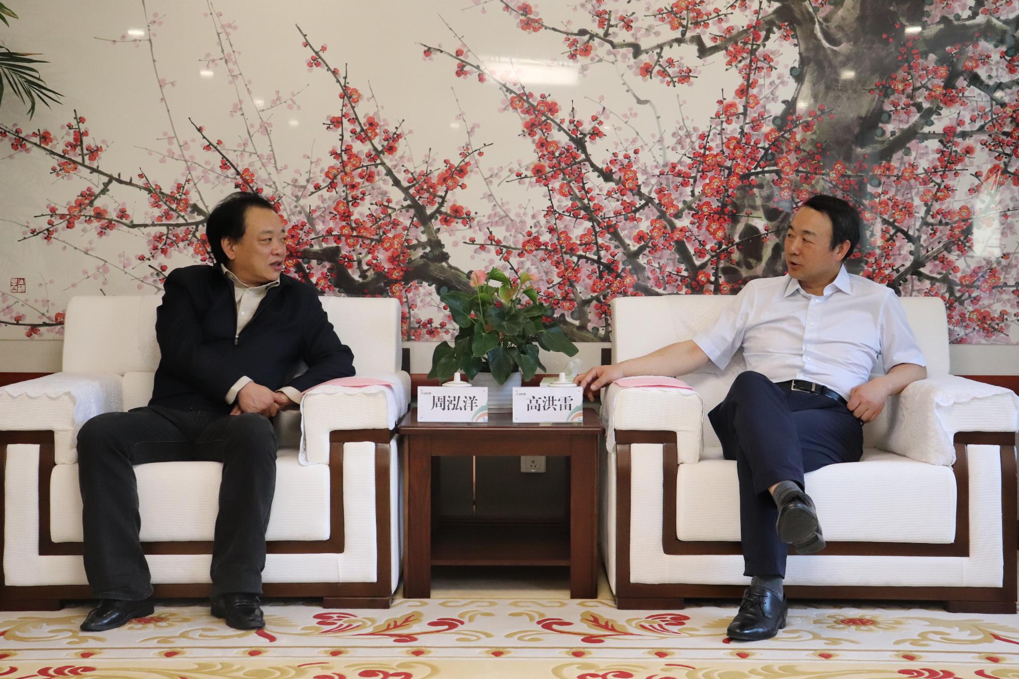 5月12日,中国文化传媒集团党委副书记、总经理周泓洋一行到访山东文旅集团,集团党委书记、董事长高洪雷会见。