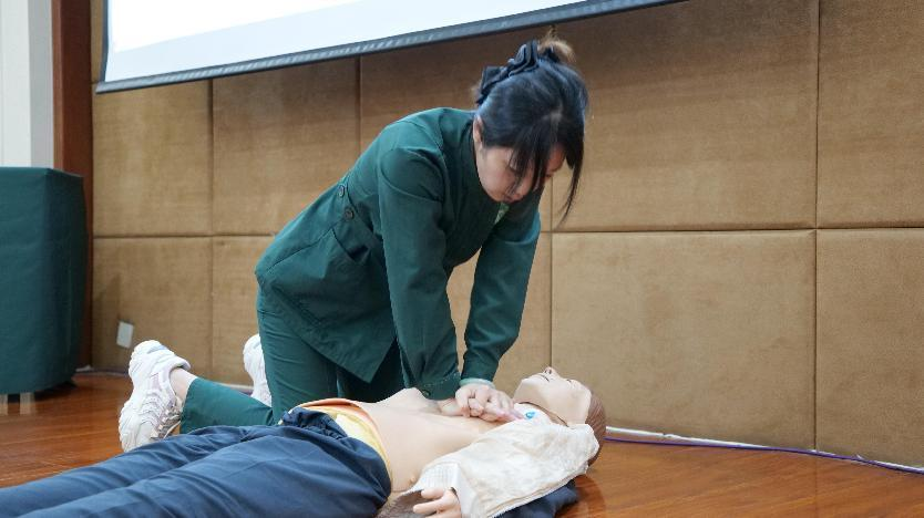 本次培训活动邀请了山东省警官总医院急诊科医护人员,采取“理论讲解+实战演示+实践指导”相结合的模式,详细教授割伤、扭伤、撞击、食物中毒等应急状况的科学处理方式,科普各类紧急情况的黄金救护时间,结合文旅从业人员工作场景实际,讲解并演示心肺复苏术、海姆立克急救法及除颤仪操作方法。现场参训员工踊跃实践,医护人员耐心从旁指导,逐个环节为参训人员纠正急救动作,切实保障全体参训员工能熟练规范掌握培训内容。活动还为员工提供了免费血压测量、血糖测试、超声检查等福利。