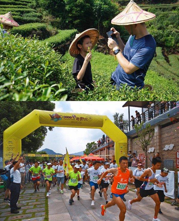 采茶体验、安溪村跑赛事开跑盛况
